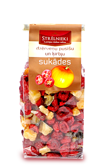 Sastāvs: grieztas žāvētas dzērvenes 10 0 g, žāvēti ķirbji 100g., cukurs. Enerģētiskā vērtība 100 g produkta 283 kcal/1185 kJ.
